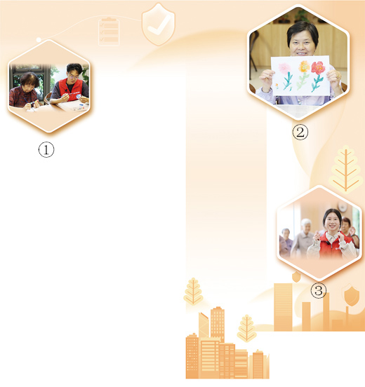 图②:老年公寓内老人展示手工画成果。