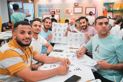 结业礼的会场上,也门商人吴傲山端坐前排,这是他第三次走进汉语班。2020年,吴傲山初来乍到,在义乌经营服装生意。他从“你好”“谢谢”学起,“多少钱”“这个尺寸合适吗”等基础语句成了他做生意的“钥匙”。沟通顺畅了,小店生意也红火起来。今年初,吴傲山又在义乌新开了一家超市,更复杂的交流需求促使他重返社区的汉语课堂。“现在我能用中文和客人聊进货渠道、谈市场行情了。”他笑着说,熟练的中文拉近了他与顾客的距离,回头客越来越多。