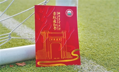 湖南农业大学2025年本科录取通知书内页,“百年学府  立德树人  逐梦湘农  激扬青春”16个题字,是“杂交水稻之父”、湖南农业大学名誉校长袁隆平院士对学子的殷殷期盼。题字旁,一蔸饱结籽实的稻穗,是以袁隆平院士为代表的一代代师生,为“愿天下人都有饱饭吃”而躬耕农业的生动表达。