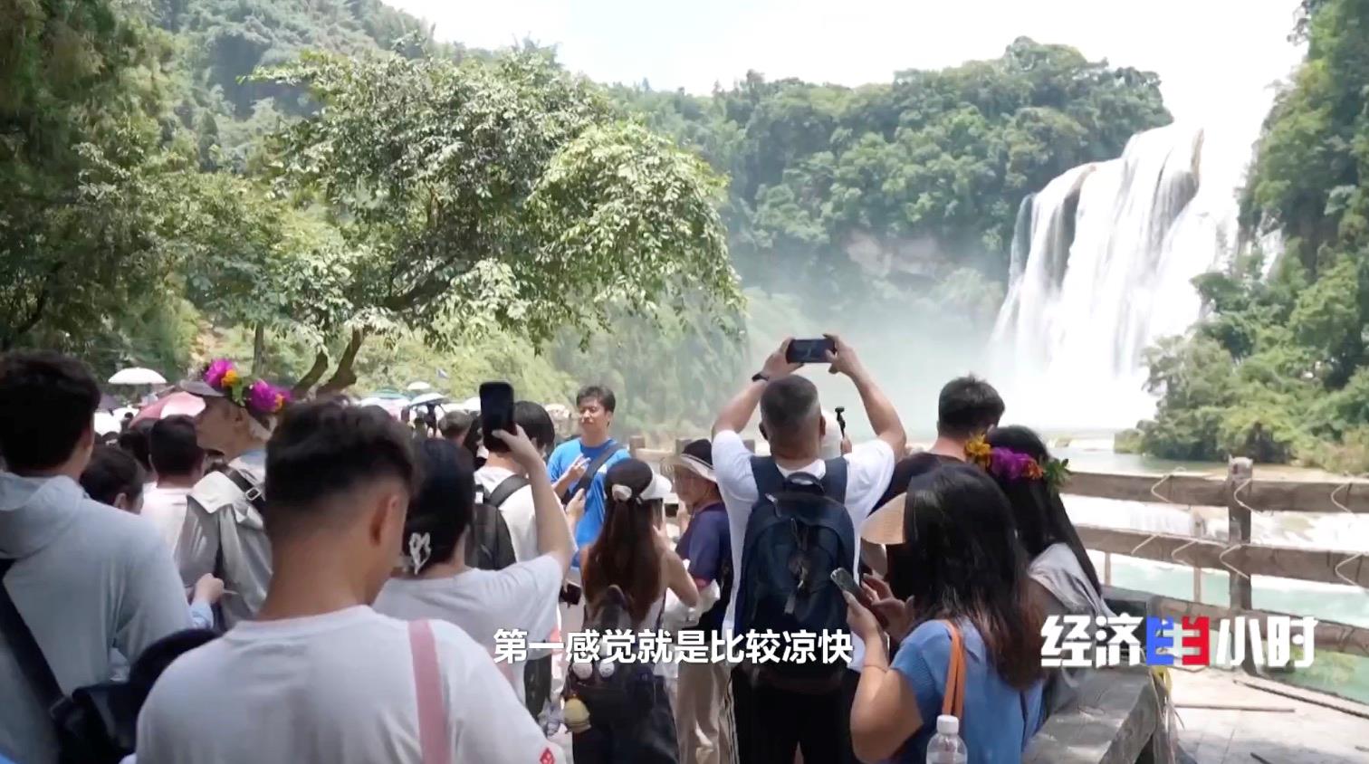 距离东北的白山黑水2000多公里,在北纬26度的贵州,夏季丰水期的黄果树瀑布以磅礴的姿态,打开了迎客模式。