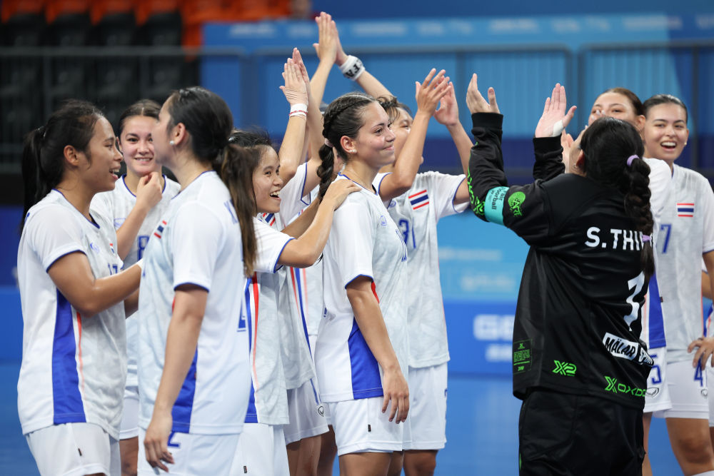 ↑泰国队球员向全场观众致谢。
