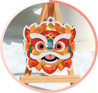 五福开运狮皮革拼图。