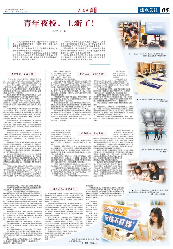 近日,笔者采访了北京、四川成都、广东顺德等多地的青年夜校,与属地团青组织、夜校老师、夜校学员等交流,看青年夜校为何深受大家欢迎。