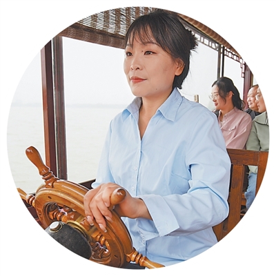朱雪宁的工作,最初是单纯开船,随着外地游客增多,她忍不住向大家介绍潘安湖湿地公园的来历。从两三句话到一路上讲不停,她没有固定讲解词,讲的都是自己和乡亲们的故事,游客很爱听。