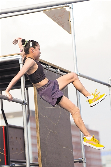 中国选手商春松在跑酷女子自由式决赛中。新华社记者李嘉南 摄
