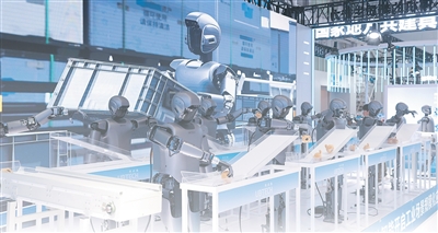 在2025世界机器人大会上展示的人形机器人工业流水线。陈晓根摄(人民视觉)