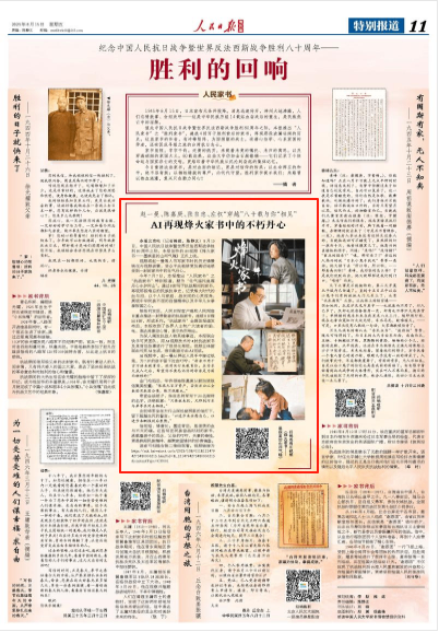 人民日报海外版北京电(记者熊建、陈静文)8月15日,中国人民抗日战争暨世界反法西斯战争胜利80周年之际,本报创作的AI视频《烽火家书——墨痕里的山河气魄》正式上线。