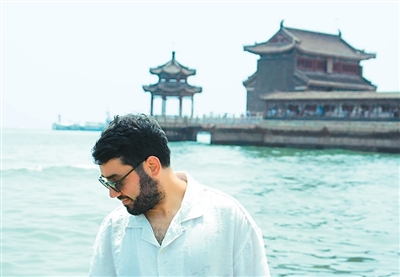 莫里斯在秦皇岛老龙头景区打卡“入海石城”。