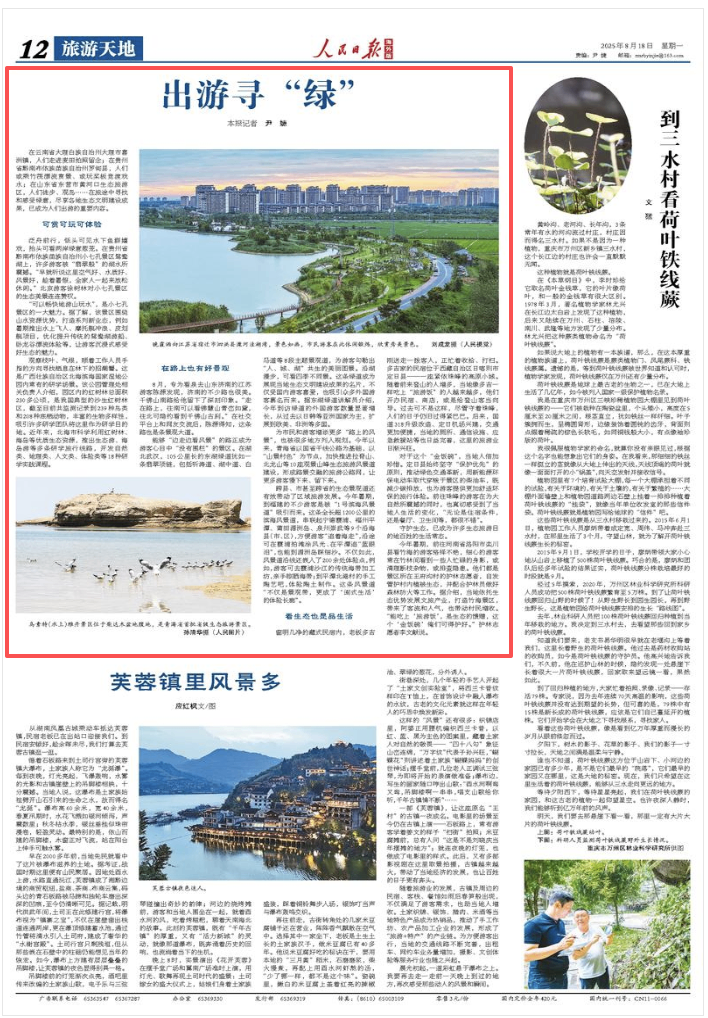 在云南省大理白族自治州大理市喜洲镇,人们走进麦田拍照留念;在贵州省黔南布依族苗族自治州罗甸县,人们或乘竹筏漂流赏景、或玩桨板竞渡戏水;在山东省东营市黄河口生态旅游区,人们徒步、观鸟……在旅途中寻找和感受绿意,尽享各地生态文明建设成果,已成为人们出游的重要内容。
