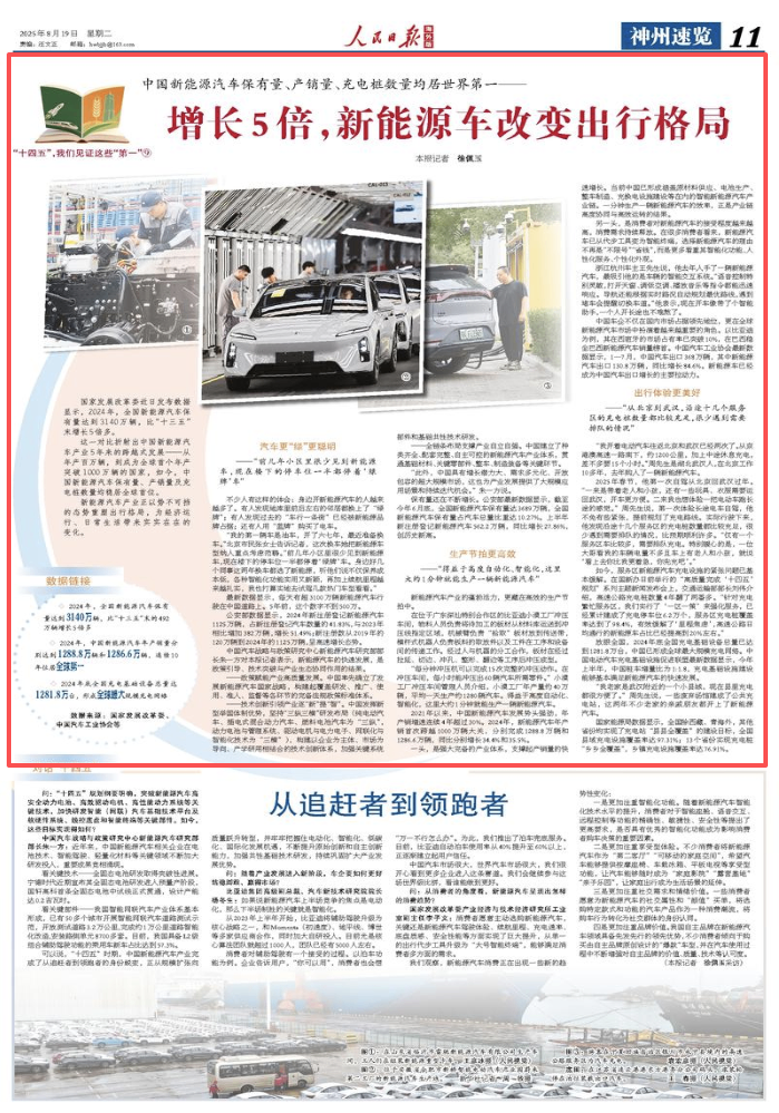 这一对比折射出中国新能源汽车产业5年来的跨越式发展——从年产百万辆,到成为全球首个年产突破1000万辆的国家,如今,中国新能源汽车保有量、产销量及充电桩数量均稳居全球首位。