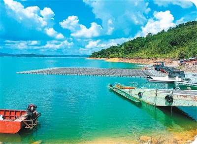 二〇二四年六月,在马来西亚沙捞越,由中国能建江苏省电力设计院有限公司承建的漂浮光伏发电项目正在建设中。