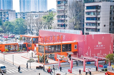 枝繁叶茂的黄桷树下,爷爷们正热烈地讨论着棋局,婆婆们在聊着家长里短;充满设计感的街巷里,不少游人慕名而来拍照打卡;装修一新的咖啡厅、火锅店等店铺里,人们欢聚一起……走进重庆市九龙坡区谢家湾街道民主村社区,既能感受生活的烟火气,也能体验商业的新活力。