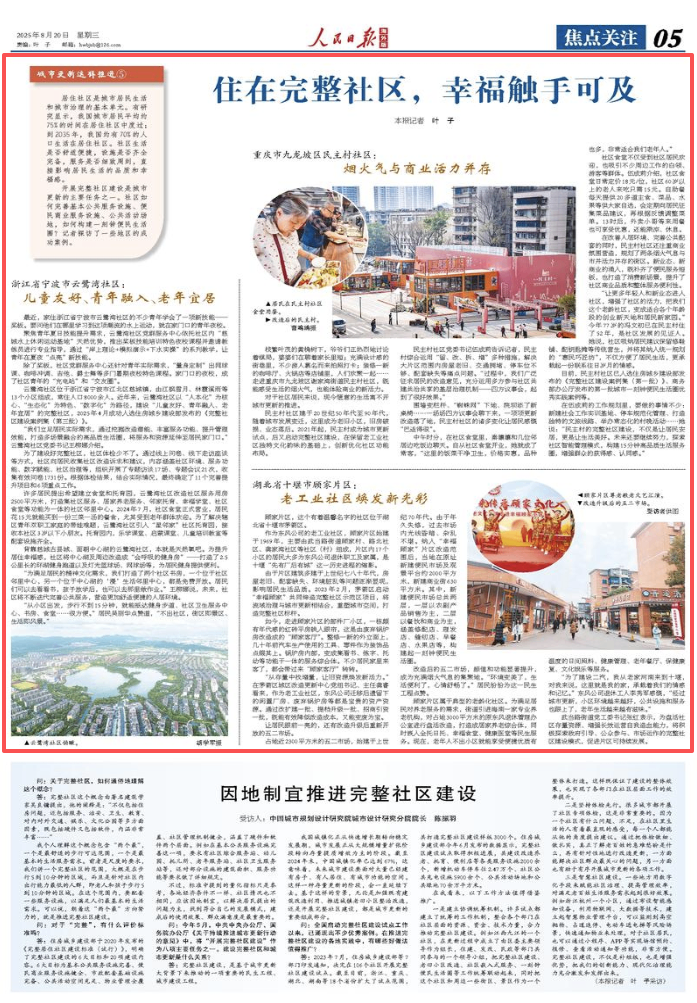 在伍成莉的工作规划里,要做的事情不少:新建社会工作实训基地、停车规范化管理、打造独特的文旅线路、举办常态化的村晚活动……她说:“民主村的完整社区建设,不仅是让居民安居,更是让生活美好。未来还要继续努力,探索社区智能管理模式,构建15分钟高品质生活服务圈,增强群众的获得感、认同感。”