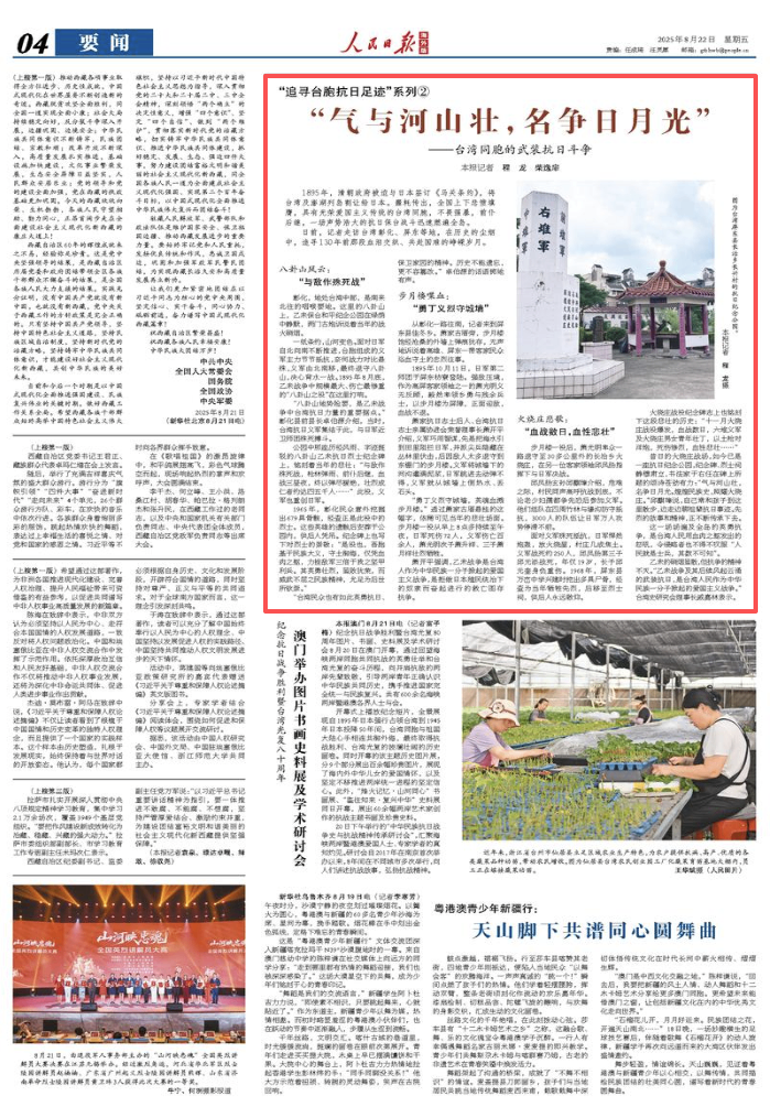 乙未的硝烟虽散,但抗争的精神不灭。“乙未战争及其后续风起云涌的武装抗日,是台湾人民作为中华民族一分子掀起的爱国主义战争。”台湾史研究会理事长戚嘉林表示。(本报记者 程 龙 柴逸扉)