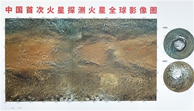 深空探测实验室展厅内的中国首次火星探测火星全球影像图。