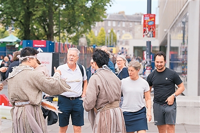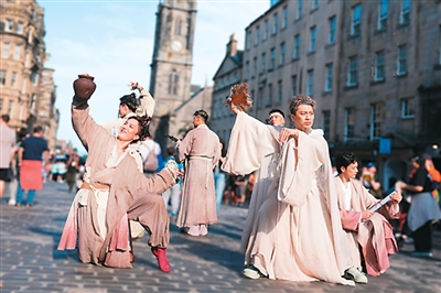 艺术节期间,演员们还走上街头路演,展示这部剧的精彩片段和经典造型,与各国观众进行交流。“爱丁堡艺术节的戏剧氛围很轻松。像这样走上街头路演、带妆宣传卖票,对我们来说都是第一次。面对面和海外观众交流,让我们更了解外国朋友对中国文化的兴趣点和关注点,有助于今后的创作和表演。”在剧中饰演阮籍的中国煤矿文工团演员郑盛聪说。