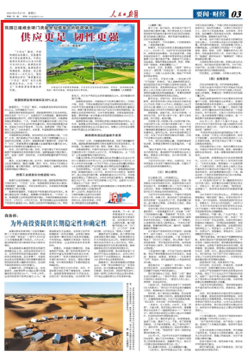 其次,运行调节能力强。目前,中国已建立了较为完备的能源产供储销体系和保供稳价机制,能源储备能力稳步提升,油气“全国一张网”加快形成,大电网资源配置和调节作用充分发挥。