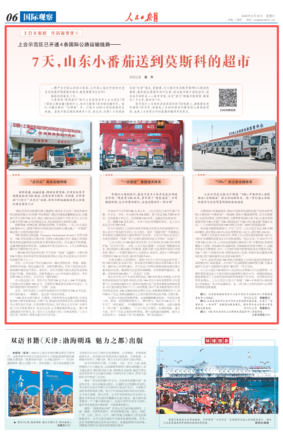 从上合示范区TIR集结中心发出的山东果蔬6天可达俄罗斯,白俄罗斯乳制品进入中国市场的运输周期压缩至10天,快捷的物流运输直接推动了上合组织国家间农贸领域的产业合作,有效带动双边贸易的增长。上合示范区正致力于构建“TIR+中欧班列+海铁联运+空陆联运”的立体运输体系,进一步打通上合组织国家与全球贸易网络的连接通道。(记者 高乔)