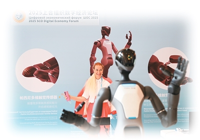 7月11日,嘉宾在2025上合组织数字经济论坛上体验操控人形机器人。新华社记者 李然摄