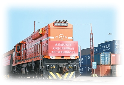 近日,2025年首列天津港经霍尔果斯直达塔什干的中亚班列从天津港物捷三堆场发车。新华社记者 赵子硕摄