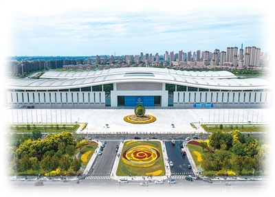 2025年上海合作组织峰会主会场外景(无人机照片)。新华社记者 赵子硕摄