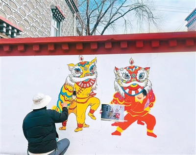 硕督镇硕督村,匠人正在绘制狮子舞墙画。受访者供图