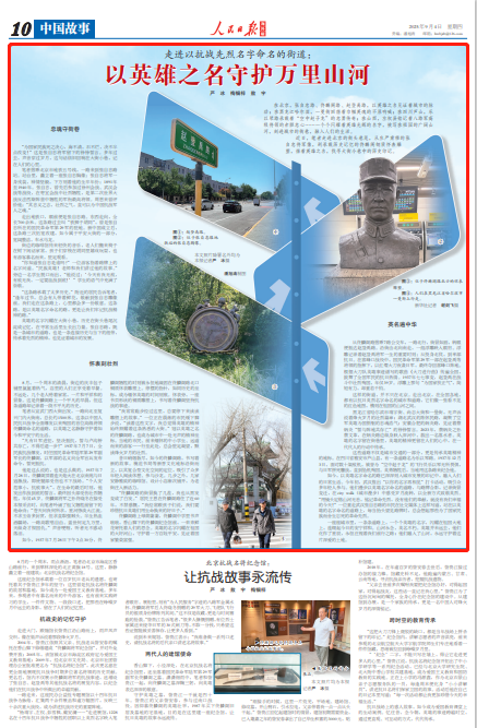 黑龙江省哈尔滨市靖宇街、尚志大街和一曼街,无声诉说着烽火岁月的壮烈篇章;湖北武汉的陈怀民路,凝聚了空军英雄为国捐躯的忠魂浩气;安徽合肥的炳炎路,见证着蔡炳炎“誓与阵地共存亡”的铮铮誓言。2023年,蔡炳炎之孙蔡文革,在炳炎路边纵身跃入深河中,救出一名落水者。英雄的名字留在街巷里,英雄的精神更留在人们的心中,在一代代人的行动中传承。