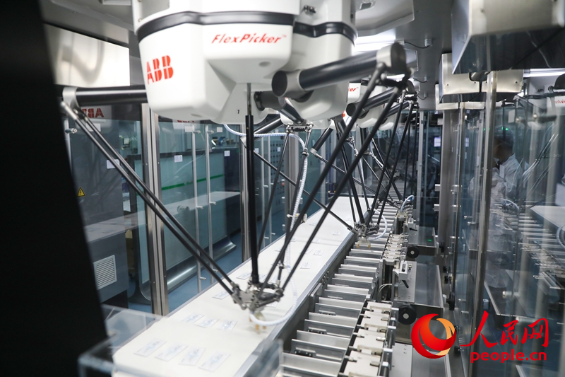 海南先声药业生产车间里,自动化设备正在飞速运转。人民网记者 牛良玉摄