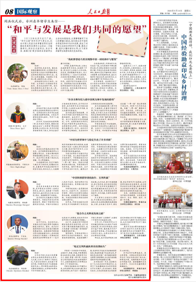 “许多非洲年轻人把中国视为和平发展的榜样”