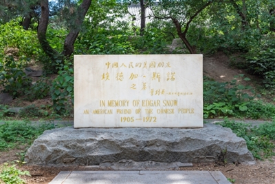 北大未名湖畔,写有“中国人民的美国朋友”字样的埃德加·斯诺之墓在绿树掩映下,庄重而肃穆。