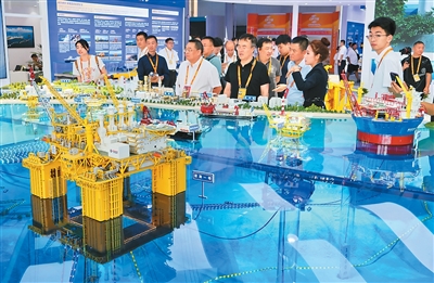 观众在服贸会上参观海油产业集群数智沙盘。唐 克摄(人民视觉)