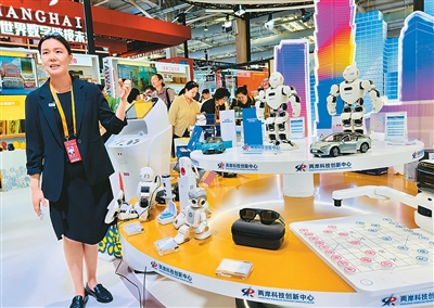 为两岸经贸科技交流合作牵线搭桥的两岸科技创新中心,今年首次亮相服贸会。天星医疗康复镜、元萝卜下棋机器人、中科云创MR眼镜……一众科技产品吸引参观者纷纷前来体验。该中心目前已有89家合作单位,其中大陆企业48家、台企41家,此次带来16家企业的30多款产品。其运营负责人汪浩对记者说,台企在精密仪器、集成电路等领域深耕多年、基础扎实,具备一定优势,而大陆拥有广阔的市场空间与完整的产业链生态,“两岸产业各有所长,未来在服务贸易领域有巨大的融合发展空间。”